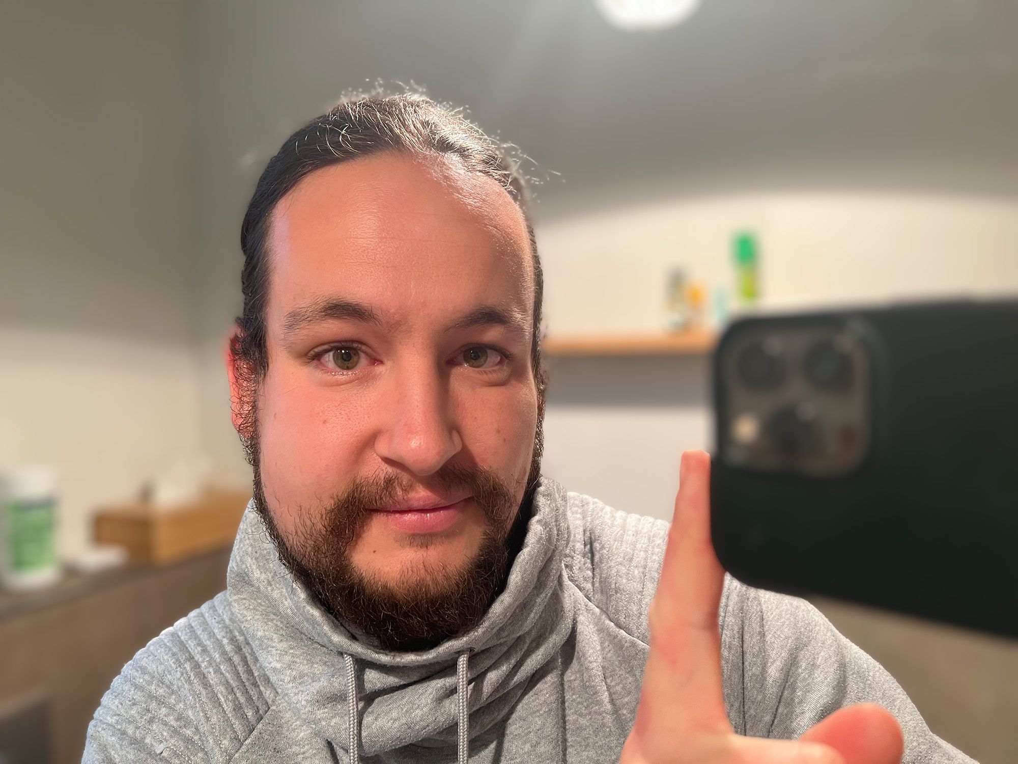 Daraufhin habe ich etwas nachgeholfen. Eine der Honigwabenaus dem Brutraum - die äußerste - habe ich über das Absperrgitter in den Honigraum gehängt. Das hat dann den Turbo gezündet. Am 13.05. war die nächste Durchsicht. Die Honigräume füllten sich und während ich da so durch die Völker sah merkte ich, wie es um mich herum auf einmal deutlich lauter wurde. Ich habe erst gar nicht realisiert, was da gerade los war. Nachdem ich mit einem Volk fertig war sind mir viele Bienen vor den Scheiben des Bienenhauses aufgefallen. Es war warm und sonnig an dem Tag - ich dachte mir also nicht sonderlich viel dabei. Ich stellte einen leeren Kasten im Bienenhaus um und sah eine immens große Traube Bienen außen am Haus hängen. Ein Schwarm. Exakt in dem Moment, in dem ich gerade vor Ort bin. Zufälle gibt's...